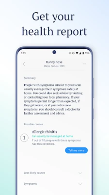 Get a health check for yourself and your relatives. You can check your symptoms online 24/7 and find out possible causes. Whatever's bothering you, from pain, headache, or anxiety to allergy or food intolerance, the free Ada app (symptom checker) could help you find answers from the comfort of your home.
