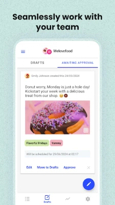 - Schedule posts at specific days and times for a consistent presence across your accounts with calendar view