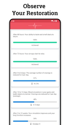 This is the perfect motivational tool for those that want to break this bad habit right now but find it hard to do so. A great motivator here is the Health tab where you can see the positive effects that quitting has on your body. Thankfully, you will also be able to track the progress and see how close you are to become smoke free.