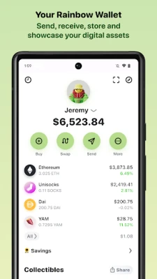 Great for newcomers and power users alike, Rainbow allows you to be in total control of your money. Unlike a crypto exchange such as Coinbase, Rainbow doesn't hold your assets on your behalf. You own them directly thanks to the power of cryptography and the Ethereum blockchain.